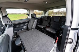 Takže vzhled dobrý. Přední sedačky skvělé. Zadní sedačky ve třetí řadě? Čekal jsem je více nouzové, ale jsou naprosto v pohodě použitelné, troufnu si říci, že i na delší trasy. I kufr zůstává ještě dostatečný, i tak nabídne v dlouhé verzi 446 litrů. Překvapení přichází v druhé řadě. Myslíte, že si dáte nohu přes nohu? Omyl, budete rádi, když se vejdete. Nejspíše jako ústupek pro místo ve třetí řadě je ta druhá ochuzená. Kdyby byla lavice posuvná, tak je to vyřešené. Ale není.